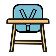 Your baby needs to be sitting safely and strapped in, in an upright position (so they can swallow properly).