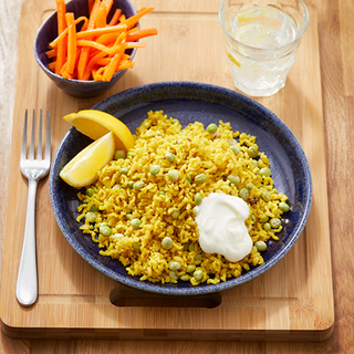 Add all the ingredients for the pilau into a large non-stick pan. Cover with a tight-fitting lid and heat on high until the water comes to the boil. Once boiling, turn the heat down to medium and cook, still covered, for 25 minutes.