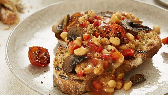 Baked beans or spaghetti hoops in tomato sauce – choose versions lower in salt and sugar