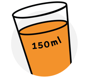 Unsweetened 100% fruit juice, vegetable juice and smoothies – maximum 150ml, once a day