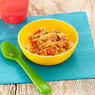 Chop or mince the curry with the cooked rice to the desired consistency – check thoroughly for bones. Serve a quarter of the fish curry in a bowl.