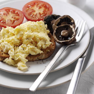 4. Serve the scrambled eggs on the slices of toast, along with the grilled tomatoes and mushrooms. Season to taste with some pepper and tuck in.