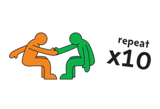 In pairs, stand opposite each other and hold each other's left hands. You must now squat down without letting go or touching the floor. Repeat 10 times.