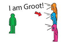 2. Team Groot shout the only thing they can: "I am Groot!"