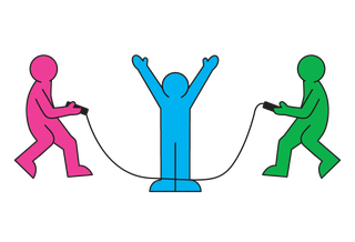 Choose 1 person to pretend to be Moana, while the other 2 hold the rope.