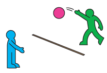 2. You cannot go into the other team's half. On the word "Dodgeball!" throw a ball at the other team. If you only have 1 ball, the teams take it in turns to throw.